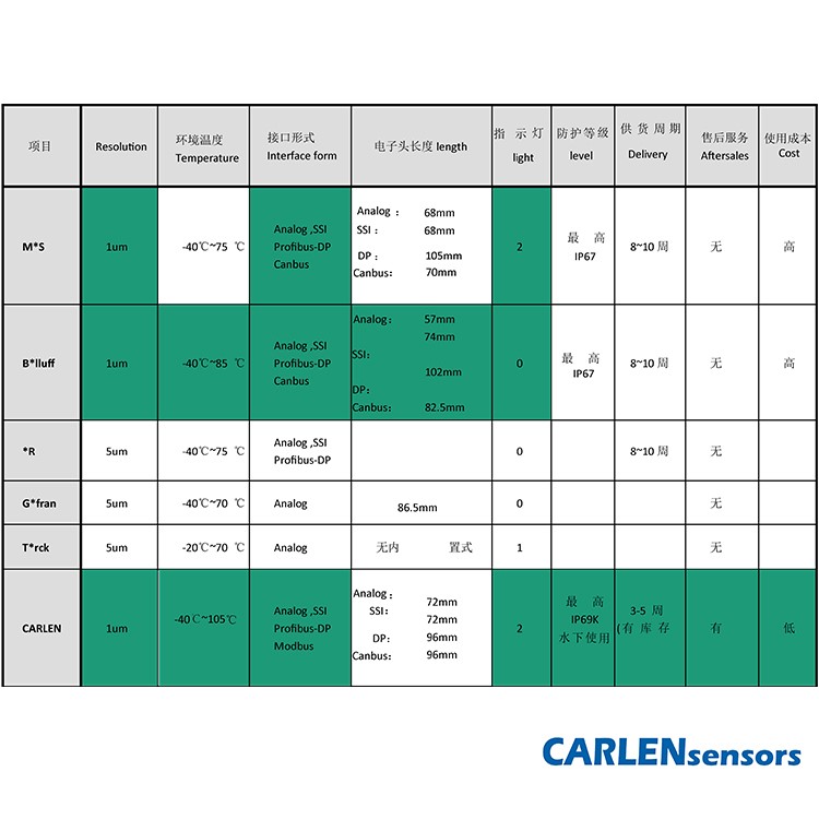 相比同類產(chǎn)品:卡倫CARLEN磁致伸縮位移傳感器有更大的溫度耐受范圍,更高的精度,以及更多的接口輸出;在防護(hù)方面,CARLEN Sensors采用全球先進(jìn)的波導(dǎo)絲傳輸技術(shù)及軍工級(jí)別的電子艙密封工藝,所以嚴(yán)格密封等級(jí)是卡倫CARLEN磁致伸縮位移傳感器的又一大特色。