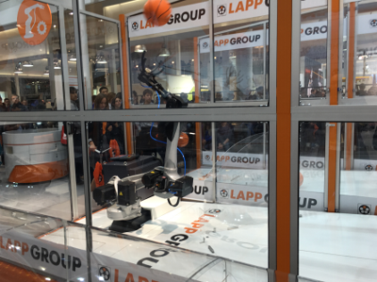此次展會最大的宣傳點就是基于德國工業(yè)提出的工業(yè)4.0概念。基于這個宣傳點,所以從已進(jìn)入展會區(qū)域,抬頭就能看到大量的帶有4.0標(biāo)識的各大品牌的巨幅廣告及宣傳標(biāo)語。也許大部分人對于所謂的工業(yè)4.0并沒有具體的直接的概念,但其實它已經(jīng)開始逐漸的體現(xiàn)并滲透在我們的日常工作和生活中。比如:人與智能機器人的交流、智能物聯(lián)網(wǎng)等相關(guān)概念及應(yīng)用。