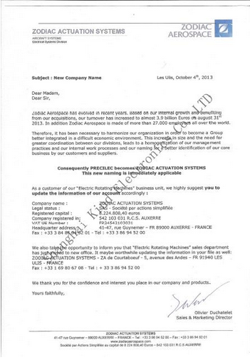 400 - 880 - 3995作為ZODIAC AEROSPACE集團(tuán)下屬的一個重要子公司,法國雷恩母公司PRECILEC在過去的一年里經(jīng)受住了全球經(jīng)濟(jì)危機(jī)及歐盟金融危機(jī)的考驗(yàn),并取得了非常矚目的成績,現(xiàn)在為了應(yīng)對全球范圍內(nèi)的戰(zhàn)略發(fā)展,PRECILEC公司更名為ZODIAC ACTUATION SYSTEMS,其集團(tuán)公司下屬經(jīng)營品牌及產(chǎn)品隸屬關(guān)系保持不變。